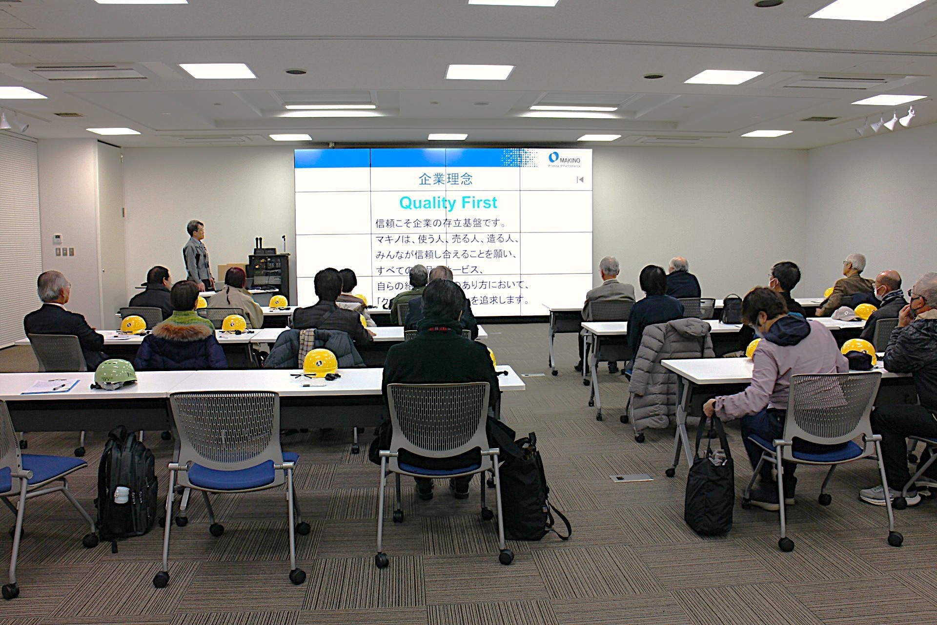- 2月12日(木)朝の社内アナウンスで「本日来客者は、マキノOB会の工場見学と数社の立会・商談」と英語を交え説明がありました。タイトなスケジュールのなか宮崎社長がサプライズでお出ましくださりご挨拶を頂戴、クオリティーファーストの数多オモテナシのシーンをMENU「会社のイベント等」で報告をさせて頂きます。